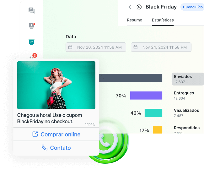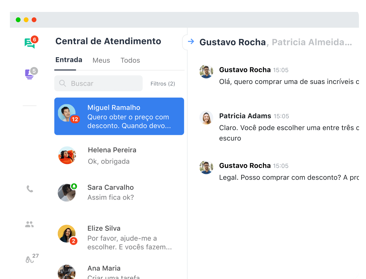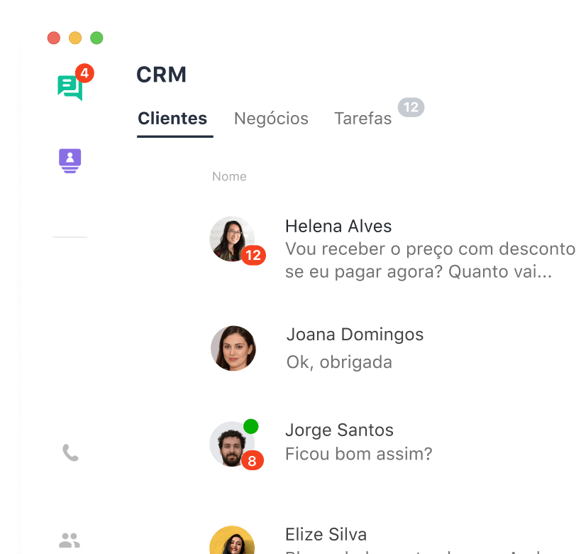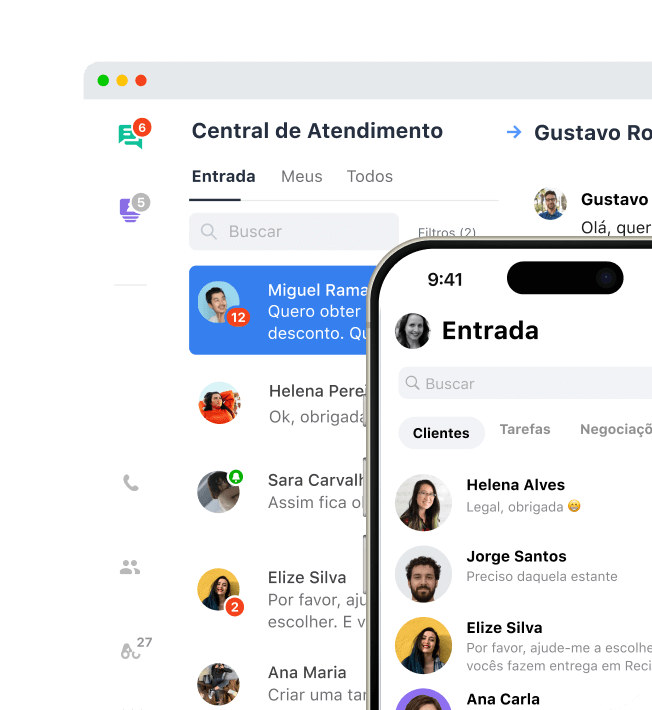 Reúna todos os canais de contato em uma única plataforma: chat online, redes sociais, aplicativos de mensagem e chamadas telefônicas. Interaja com os clientes usando o canal que eles preferirem