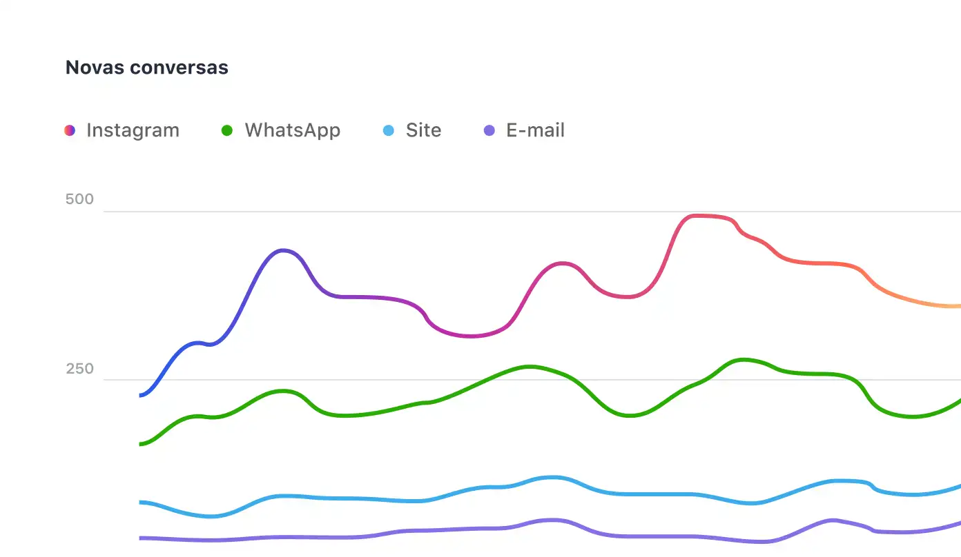 Saiba de onde seus atendimentos surgem e confira quais são seus canais com maior potencial de conversão, seja pelo chat no site, WhatsApp, Instagram, entre outros.