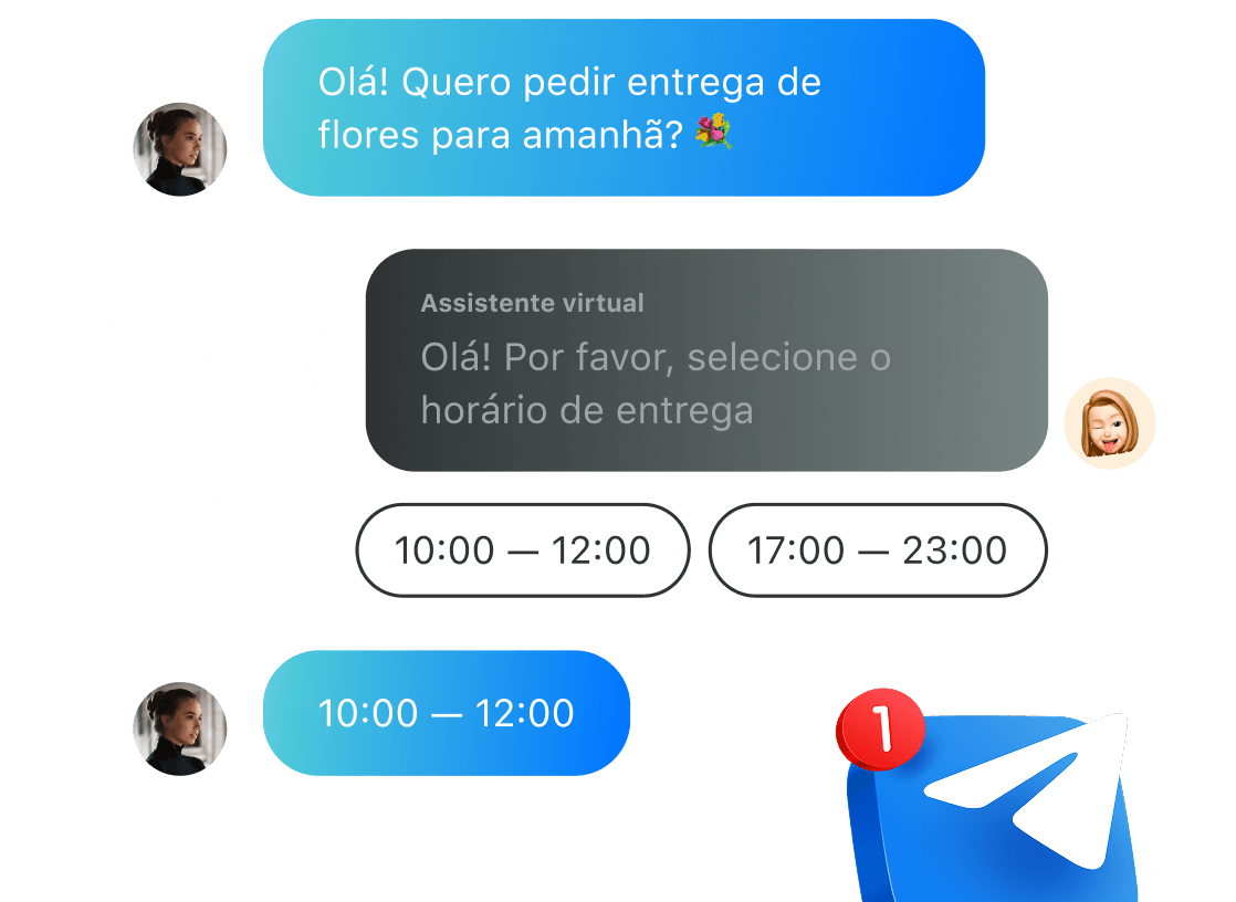 O Agente de IA do JivoChat pode resolver solicitações comuns instantaneamente e ajudar a economizar horas de trabalho. Além disso, ele permite que você esteja sempre disponível para atender os clientes