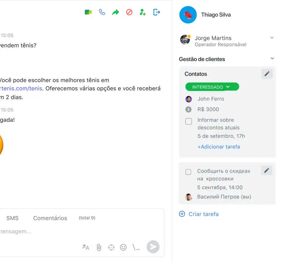 Conversas, clientes e oportunidades em todos seus dispositivos