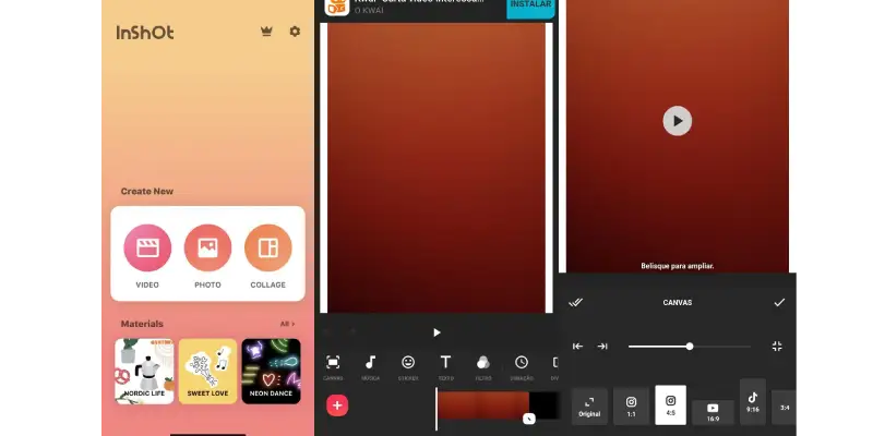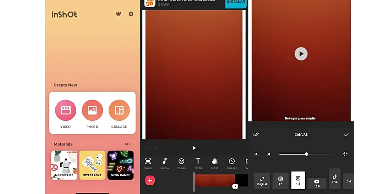 Depois de baixar o InShot siga o passo a passo abaixo: