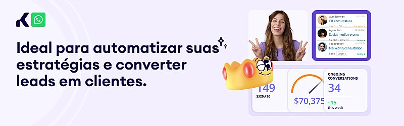Com a Kommo CRM, você pode gerenciar conversas, automatizar fluxos de trabalho e acessar o histórico detalhado das interações, tudo integrado diretamente ao WhatsApp.