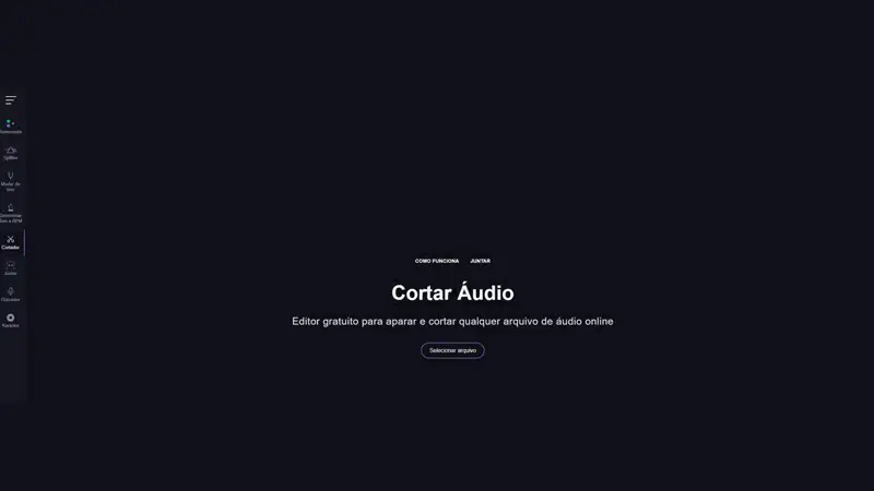Além da função de corte, a plataforma também te permite acessar diversos outros recursos interessantes como um splitter, modificador de tom, gravador, karaokê e muito mais.