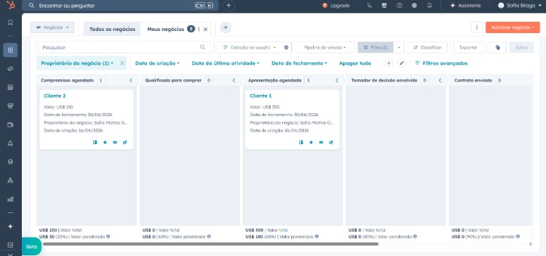 | HubSpot | Sim | Sim | Sim | Sim | R$ 224,70/mês (Smart CRM) e R$ 449,40/mês (WhatsApp via Service Hub) |