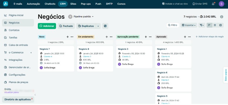| SendPulse | Sim | Sim | Sim | Sim | R$ 80/mês (CRM anual) e R$ 76/mês (WhatsApp API anual) |