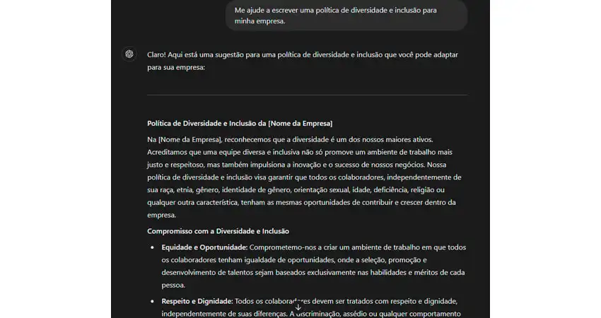 "Me ajude a escrever uma política de diversidade e inclusão para minha empresa."