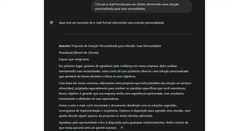 "Crie um e-mail formal para um cliente oferecendo uma solução personalizada para suas necessidades."