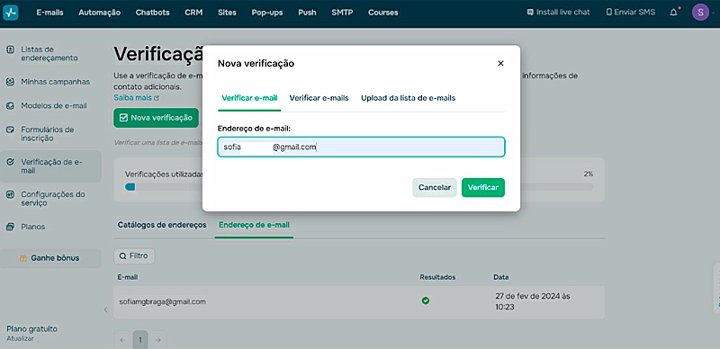 Preço: a plataforma é gratuita para validação unitária de e-mail. Mas, para verificação de listas completas, o pacote mais barato da plataforma dá direito a 1.000 verificações e tem custo de *R$ 37,67.