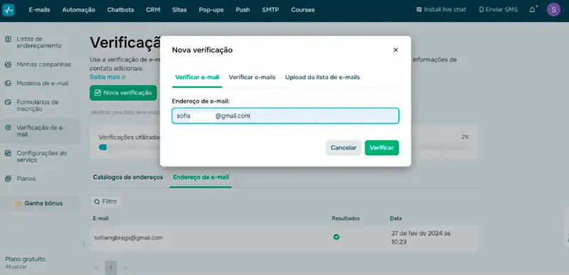 Verificador de e-mail da plataforma de automação de marketing digital da SendPulse