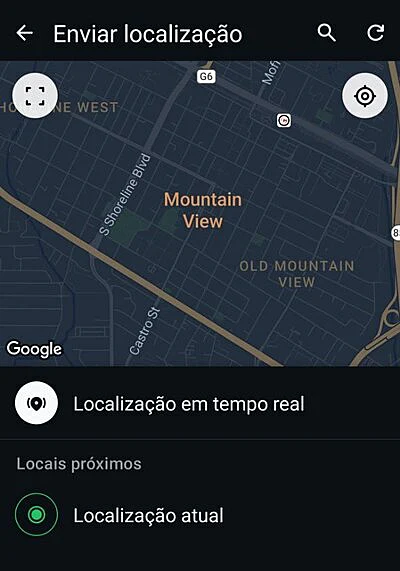 No menu de anexos, toque em Localização.O WhatsApp mostrará duas opções: