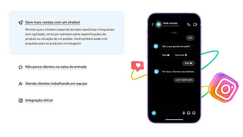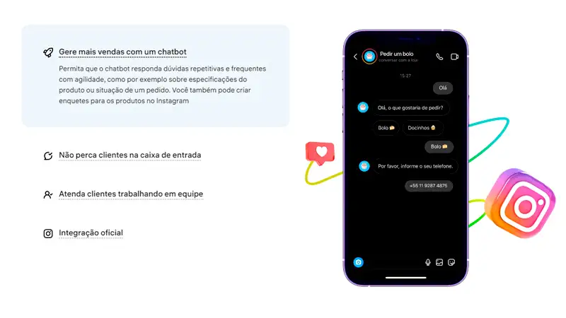 Tudo isso pode ser gerenciado a partir de um painel unificado, o que otimiza o trabalho da sua equipe e eleva a experiência do cliente ao próximo nível. Esses recursos já estão disponíveis na nossa plataforma — e a integração com Instagram e WhatsApp é simples, segura e rápida de configurar.