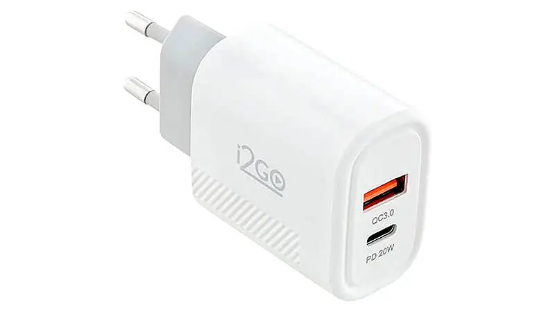 Semelhante ao listado anteriormente, o carregador universal celular I2GO Pro possui uma entrada USB-C de 20 Watts compatível com a tecnologia Power Delivery e uma entrada USB-A de 18 Watts com tecnologia Quick Charge.