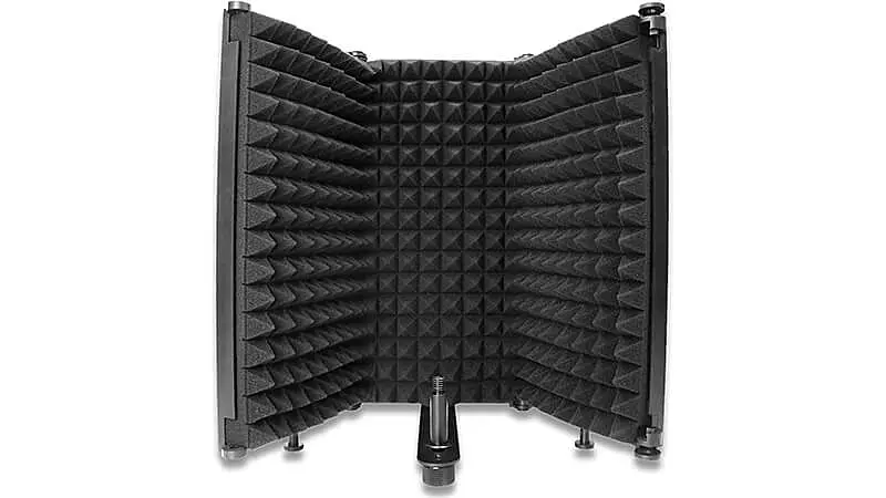 Seu design versátil permite que o escudo de isolamento acústico seja fixado em uma bancada, mesa ou até mesmo em volta de um pedestal de microfone. Vale destacar que ele vem acompanhado de uma espuma em formato de caixa de ovo.