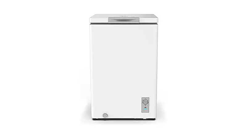 O primeiro item da nossa lista é o freezer horizontal de 1 porta CFA10B1 da Midea, uma opção compacta com capacidade interna de 100 Litros, perfeita para comércios ou casas que possuam espaços físicos limitados.