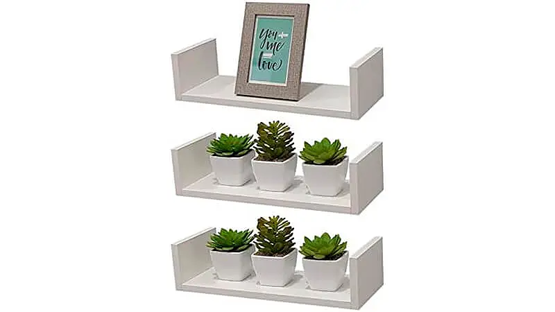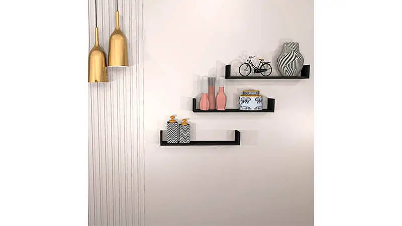 Semelhante as prateleiras para escritório que listamos acima, este conjunto da DecoraLar também conta com três peças, todas elas com design em formato de U e sistema de fixação na parede com suportes invisíveis.