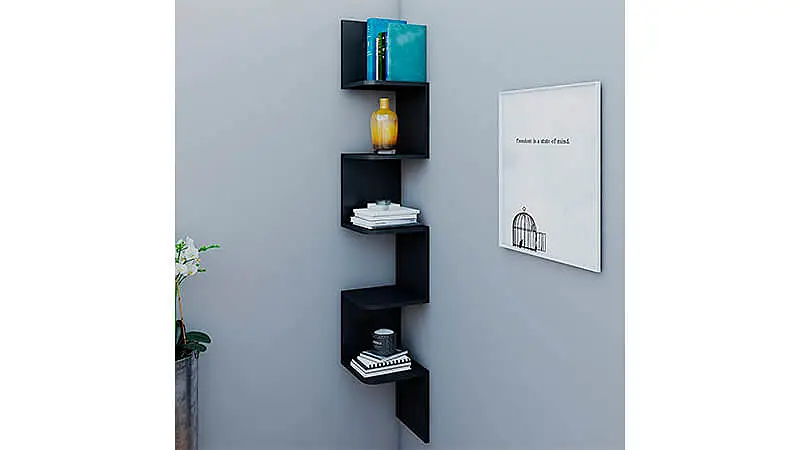 Por ultimo, você pode optar por investir no kit de prateleiras de canto da Multivisão, um móvel com design moderno composto por cinco prateleiras compactas que suportam até 5 quilos, desde que posicionados de forma distribuída.