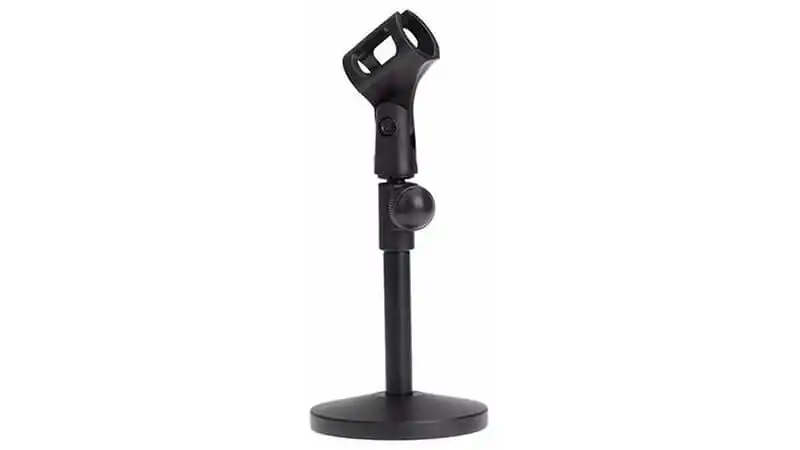 - Suporte de Mesa: Esse modelo possui uma base circular plana para que te permite posicionar o microfone em uma mesa ou qualquer superfície plana. Ele é ideal para videoconferências, podcasts, streams, pois não necessita de instalação e mantém o microfone próximo ao nível da boca.
