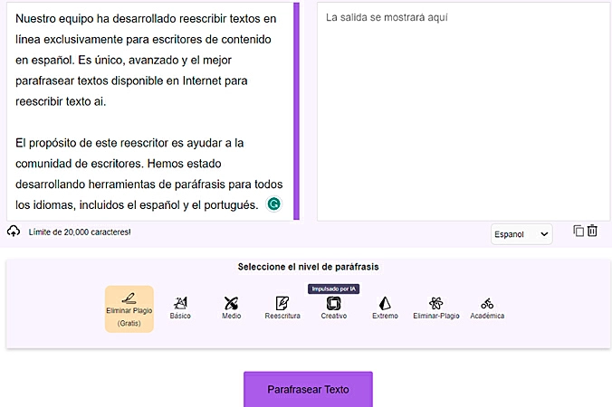 Características de Reescribirtextos.com: