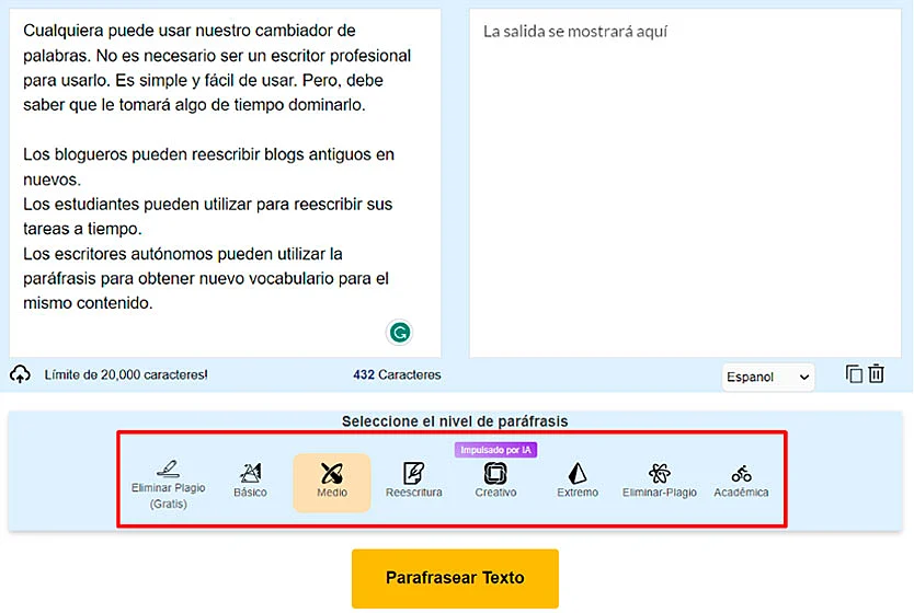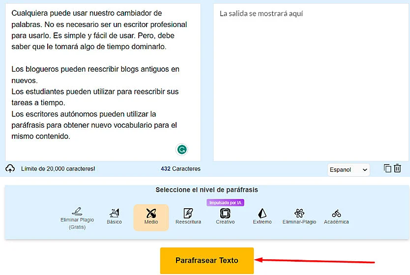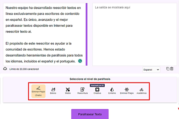Utilizar Parafrasear.org: