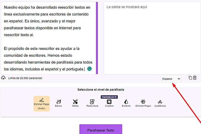 - É um reescritor multilingue que pode reescrever textos em nove línguas diferentes, incluindo espanhol, inglês, francês, italiano, romeno, catalão, português, tagalo e holandês.