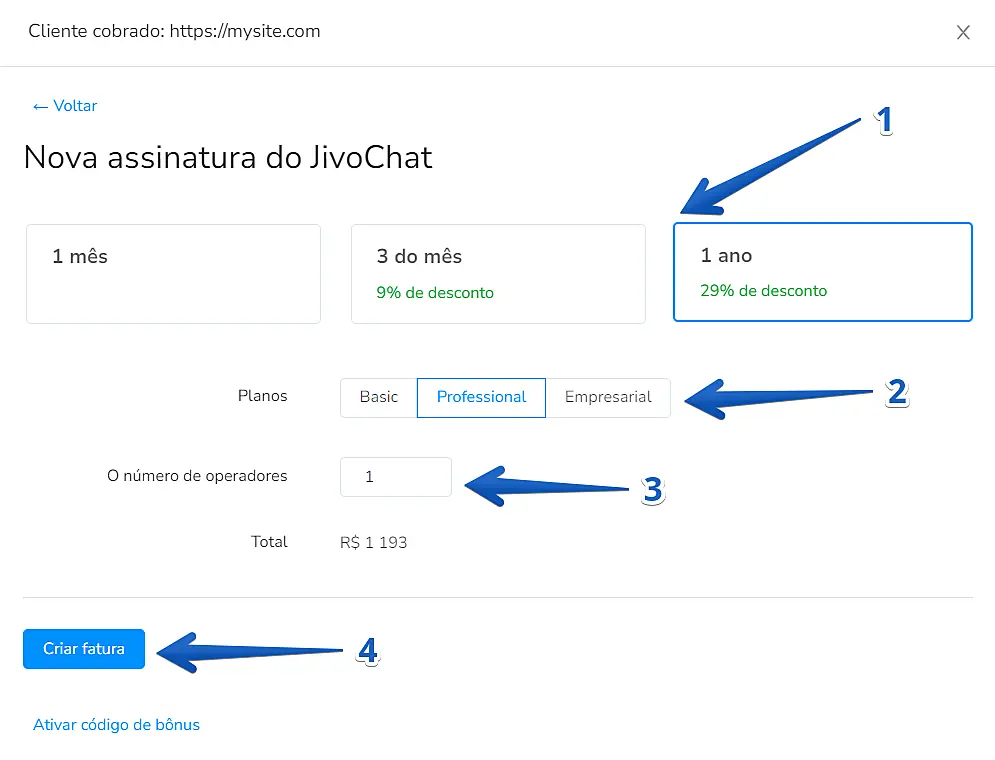 3º Passo: Gerar uma fatura