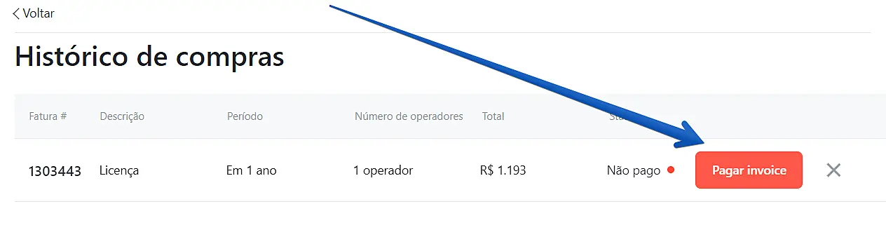 Clique em "Abrir fatura" para abrir o boleto gerado e realizar o pagamento da sua assinatura do JivoChat. Pode levar até 24 horas para a ativação da assinatura em pagamentos via boleto. Note que os boletos gerados possuem 1 dia de validade. Caso perca o prazo de pagamento, deverá gerar um novo boleto.