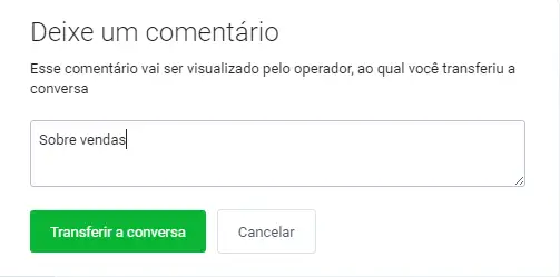 Em seguida, digite uma mensagem (o visitante não verá essa mensagem) que aparecerá para o operador para o qual está transferindo a conversa, e clique em "Transferir a conversa":