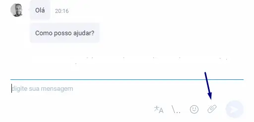 Quando você clicar no botão mostrado na imagem acima, uma janela com os arquivos do seu computador será aberta. Você pode selecionar até 5 arquivos de cada vez para enviar ao visitante. Após selecionar os arquivos, você poderá escrever uma mensagem para ser enviada juntamente com os arquivos, ou simplesmente clicar em Enviar para enviar os arquivos: