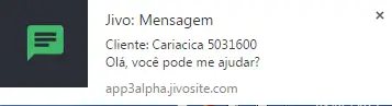 Quando o visitante envia uma mensagem, você verá uma notificação do lado direito no canto inferior da sua tela:
