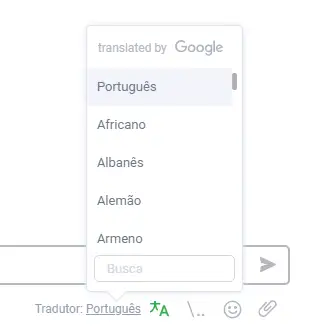 1.Tradutor Automático Se você receber um chat em uma língua diferente, pode clicar neste ícone para traduzir automaticamente a mensagem para o idioma do seu app. Além disso, você pode escrever no seu idioma nativo e a mensagem será enviada no idioma do visitante para que ele entenda corretamente sua mensagem: