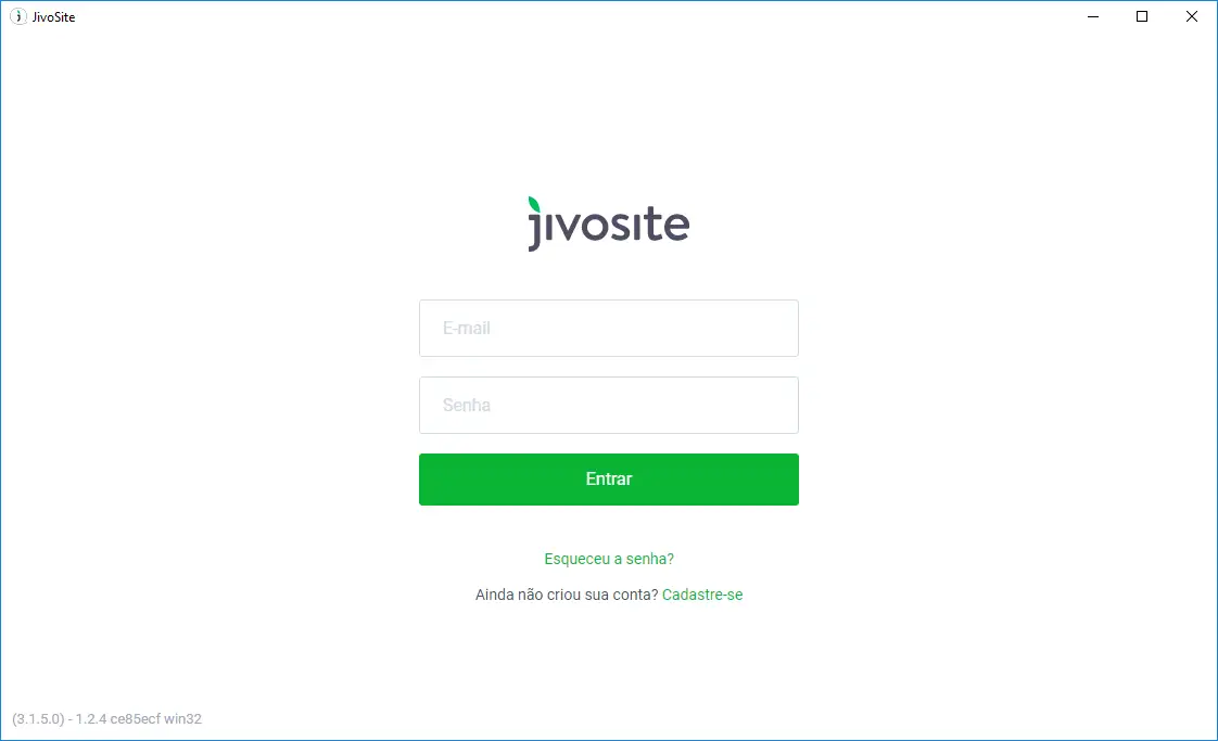 Após a instalação, você pode executar o aplicativo através do atalho na sua área de trabalho ou através do menu Iniciar > Todos os aplicativos > Jivosite. Após executar o aplicativo, você verá uma tela de login – você precisa digitar o seu e-mail e senha do JivoChat. Note que o seu e-mail não pode conter letras maiúsculas.