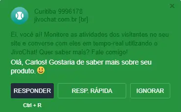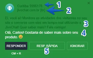 - Clicando no botão "Resp. Rápida", você pode enviar uma mensagem para o visitante diretamente da janela de notificação. A janela do aplicativo não será aberta.