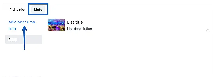 Clique na opção "Lists" e, se seguida, em "Adicionar uma lista".