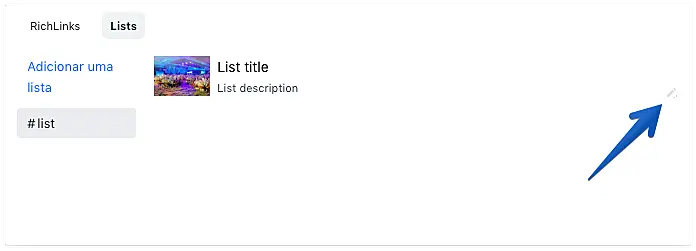 Para editar ou deletar uma Lista, clique na aba Lists para ver as listas existentes e clique no botão de edição localizado do lado direito inferior da Lista.