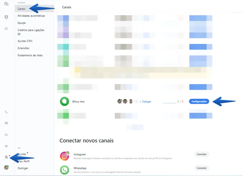 Para alterar as configurações de design do widget do JivoChat, faça o login em nosso Desktop app ou Web app e vá em Configurações -> Canais -> Configurações (ao lado do nome do site).