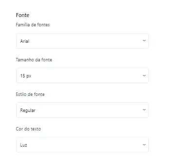 Em "Fonte" você pode definir o estilo, tipo, cor e tamanho da fonte.