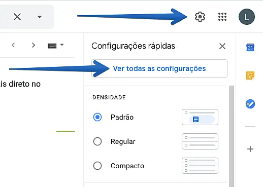 1. No Gmail, clique em "Configurações" > "Ver todas as configurações".