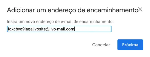 3. Cole o e-mail de encaminhamento do JivoChat e clique em Próxima.