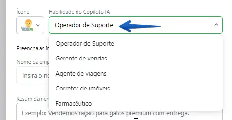 - Habilidade do copiloto de IA - selecione no menu suspenso o cargo do operador
