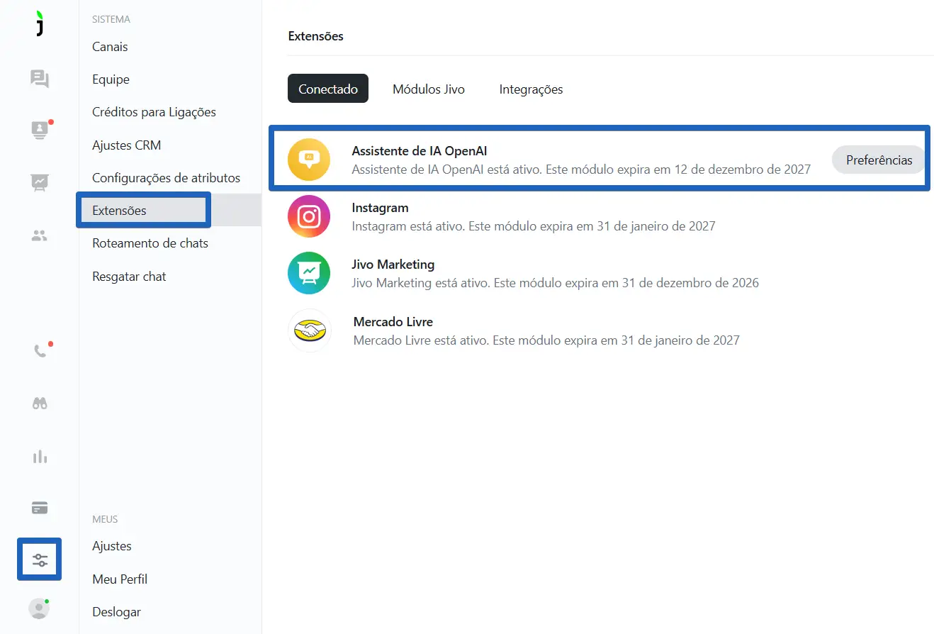 Para habilitar o Assistente IA no app JivoChat, siga os seguintes passos: