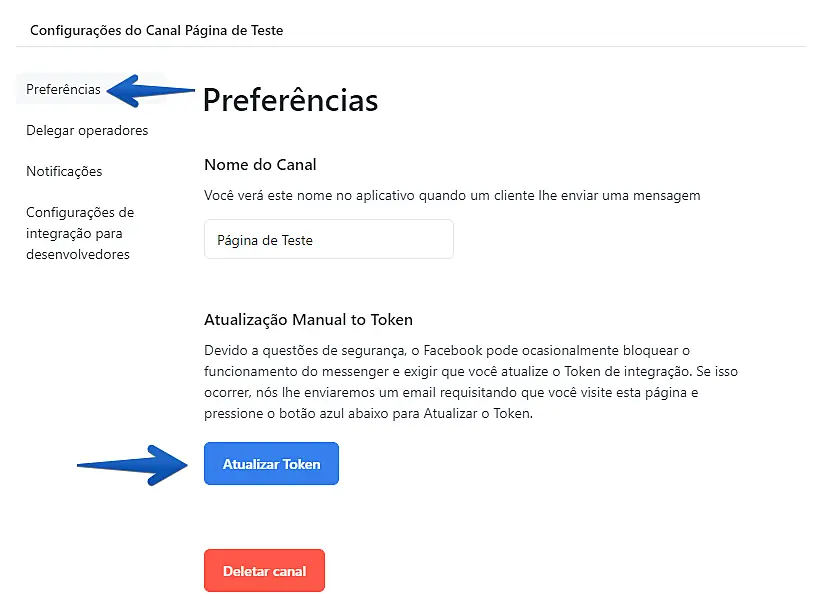 Pronto! O token já foi atualizado. Agora você já pode trabalhar normalmente em conversas vindas do Messenger da sua página do Facebook.