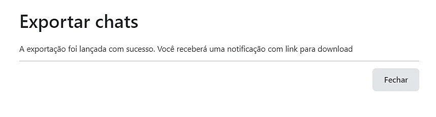 Uma notificação será exibida na tela confirmando o sucesso da exportação e em breve você receberá o link para download.