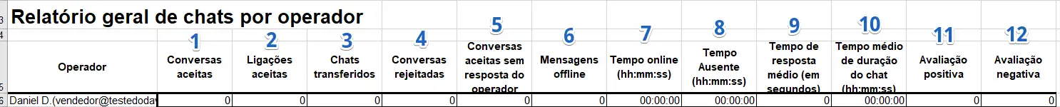 Os parâmetros são os mesmos encontrados na seção "Relatório geral de chats por operador".