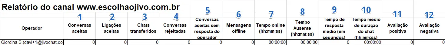 Estatísticas individuais dos operadores em cada canal existente em sua conta:
