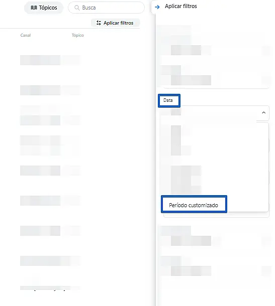 - Data: você pode filtrar de acordo com o período que deseja analisar.