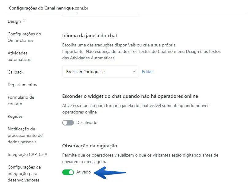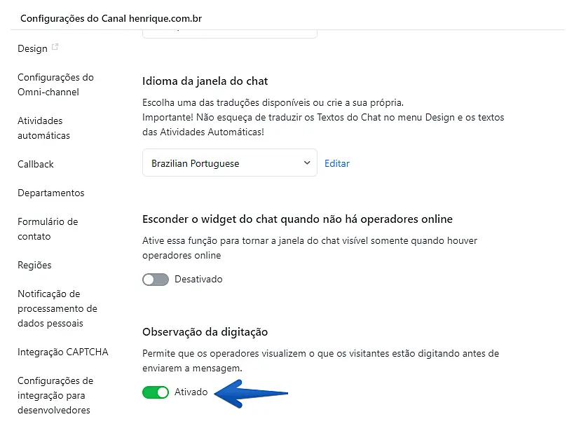 Este recurso permite que os operadores visualizem o que os visitantes estão digitando antes de enviarem a mensagem.