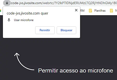 Depois de clicar em Iniciar uma chamada, ele deverá permitir acesso ao microfone que será solicitado pelo sistema.