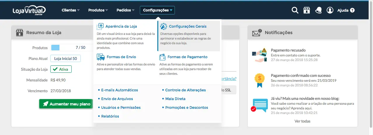 1 - Acesse o administrador da sua loja e clique em Configurações -> Configurações Gerais