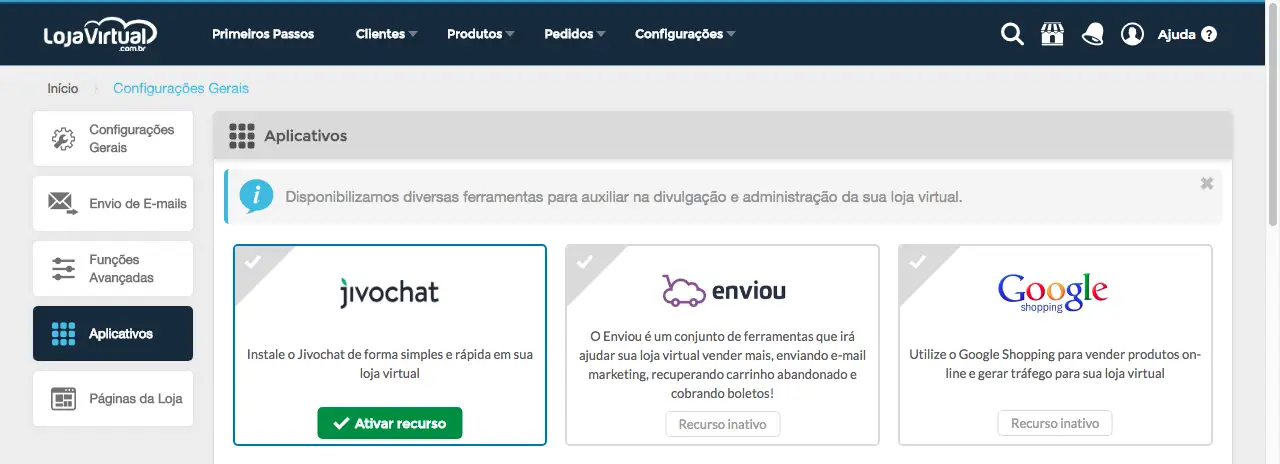 Para instalar e começar a usar hoje mesmo o JivoChat em sua loja da Loja Virtual, basta seguir os passos abaixo: