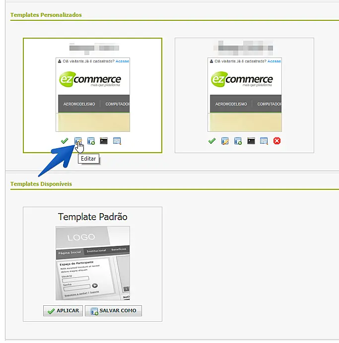 Retorne à página de templates e clique em "Aplicar este Template". Aceite as opções marcadas em vermelho e clique em "Sim".